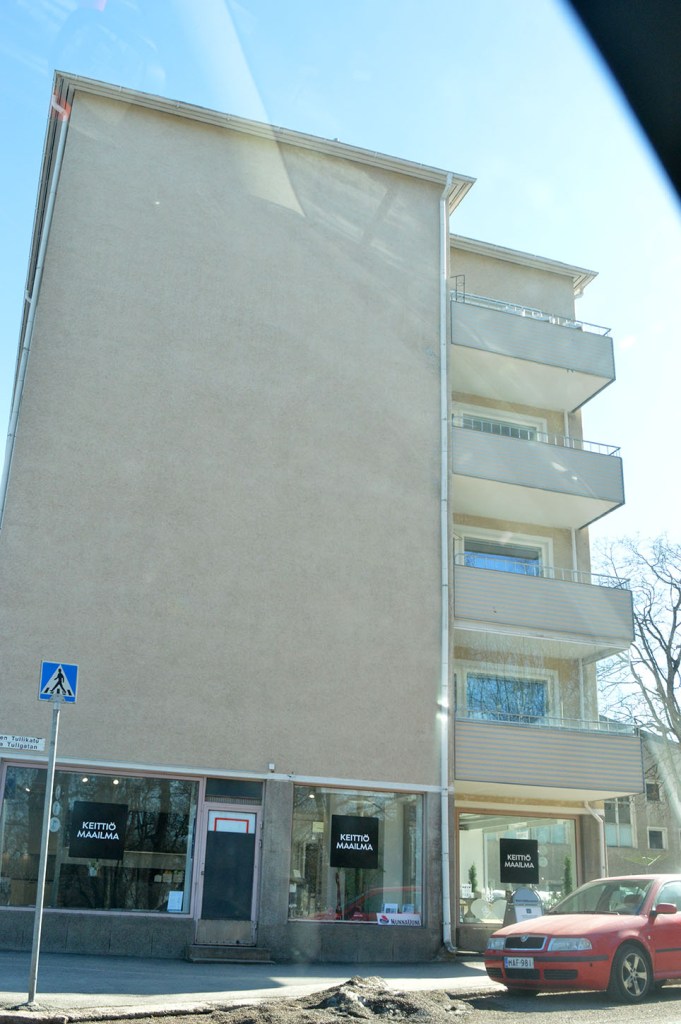 Skyltar i vårt lilla köpcentrum i Galleria vid Drottninggatan. Här finns en sportaffär, en affär som säljer glasögon och optikertjänster, en bankomat (Talletus = insättning, Otto = uttag), Karvonen shop som säljer klockor, smycken och gåvoartiklar (också via nätet), en affär som säljer vitvaror och elektronik och en läkarstation. Här har också funnits kafeteria, lunchställen, bokhandel med mera, sådant som kommit och gått och senare flyttat eller slutat.
