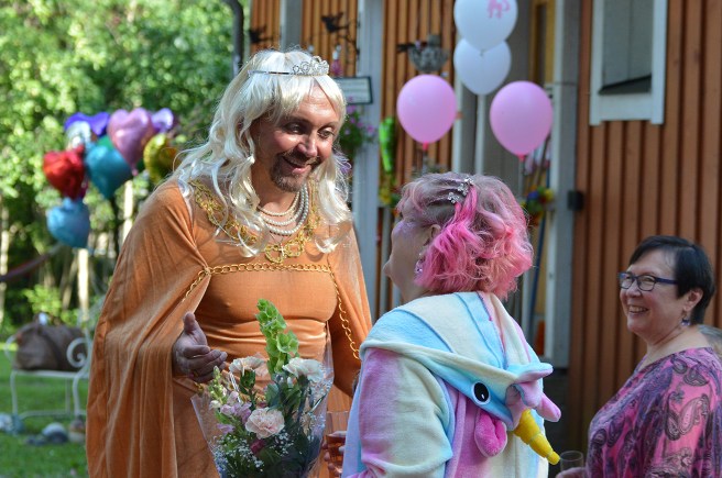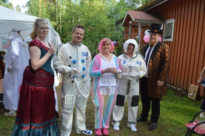 En dag hade vi besök av Yles Buu-klubben i Lovisa. Det var program för barn på Kino Marilyn. Och barn brukar tycka om maskerader. Jag gillar också sådana, men blir allt mer sällan att delta i sånt i den här åldern.