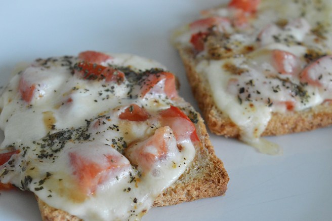 Lunchen för gästen och mig blev snabbt tillredda bruschetta-mozzarella.