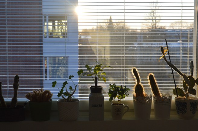Jag fortsätter med vardagssysslorna här hemma, eldar, kör en tvättmaskin och plockar bland grejer som ännu inte på sju månader hittat rätta platser i hemmet. Allt julpynt är nu borta och hyacinterna hade blommat ut så det åkte i sopcontainern igår. Har ofta lekt med tanken på att spara dem och plantera dem på våren och se om det kommer upp något ett år senare, men det har aldrig blivit av 🙂