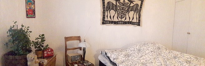 Bilden är tagen från min arbetsplats, det vill säga bakom min rygg ser det ut så här. Hade panorama-inställning så konstverken på väggen ser lite små ut 🙂