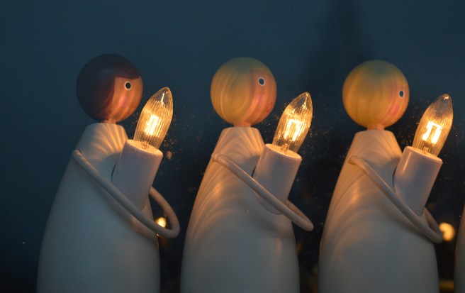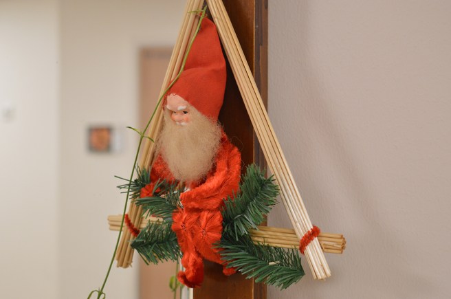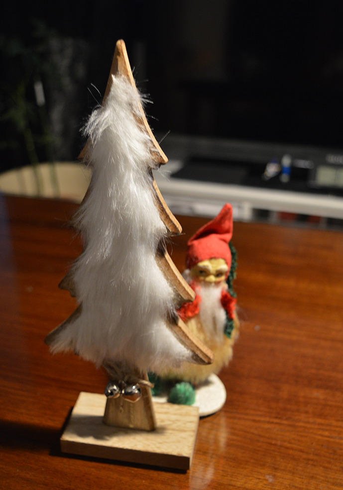 Sådana här prydnader kan ändå vara hur kära som helst. Den här finns på ett äldreboende i staden. Och den enda tomte jag årligen ställer fram till jul är ett kärt minne från 1960-talet. Han ser också bister ut 🙂