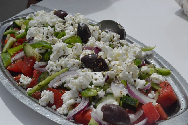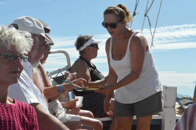 Lunchen ombord tillreddes framför våra ögon. Salladen toppades med massor av citron och olivolja. SÅ gott!