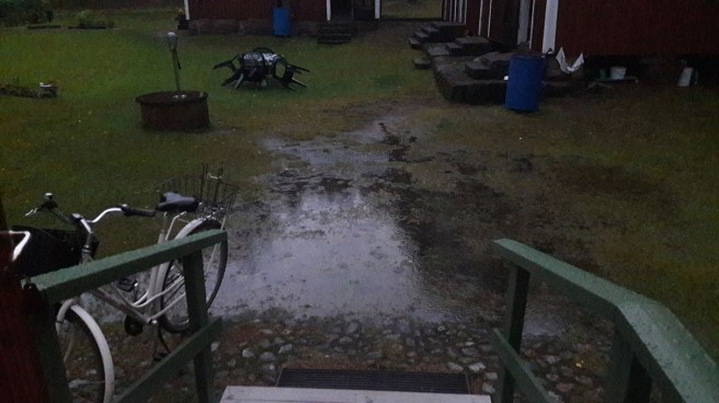Dagen började med ösregn, men nu ser det ut så här då jag sitter och tittar ut från arbetshörnan. Solen kom fram vid 18-tiden.