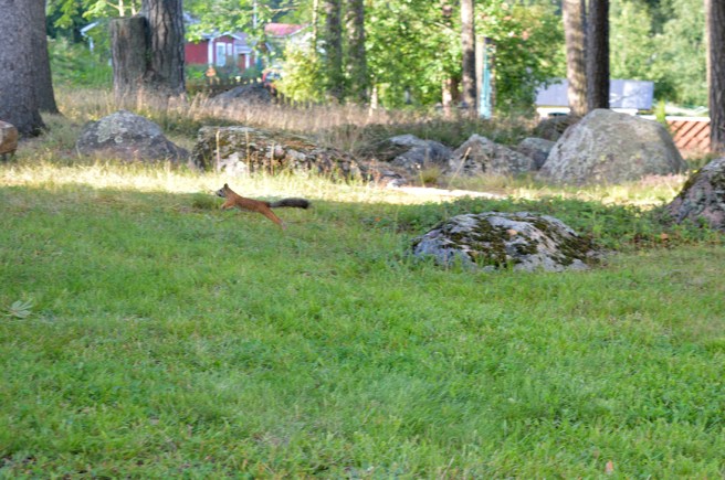 Hälsade på Inge-Maj, Bengt och Faster-Aster Inkku i går. Innan solens sista strålar försvann bakom trädtopparna hann vi njuta en stund i trädgården. Där brukar år efter år finnas en eller flera ekorrar.