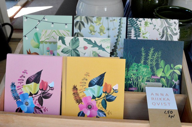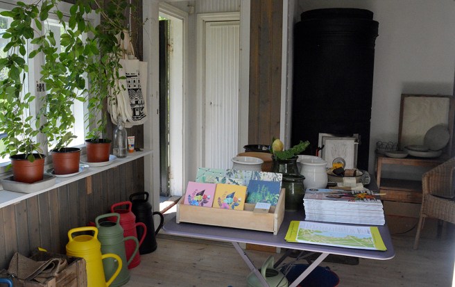 Fina vykort av Anna Riikka Kvist, Rune Rikbergs keramik, Luana Lill-Smeds ekologiskt framställda tvålar, krämer och schampoo… allt möjligt finns här till salu.