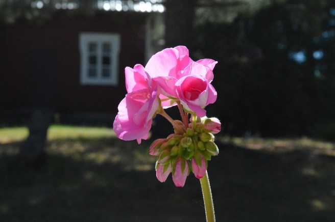 Det blev en ampelpelargon till balkongen i dag. Jag har inte ännu bestämt mig för om den ska få hänga, eller om den ska få stå i en högre kruka. Om den inte hänger klipper jag bort plastbanden/hängena, som jag egentligen tycker att är lite fula 🙂