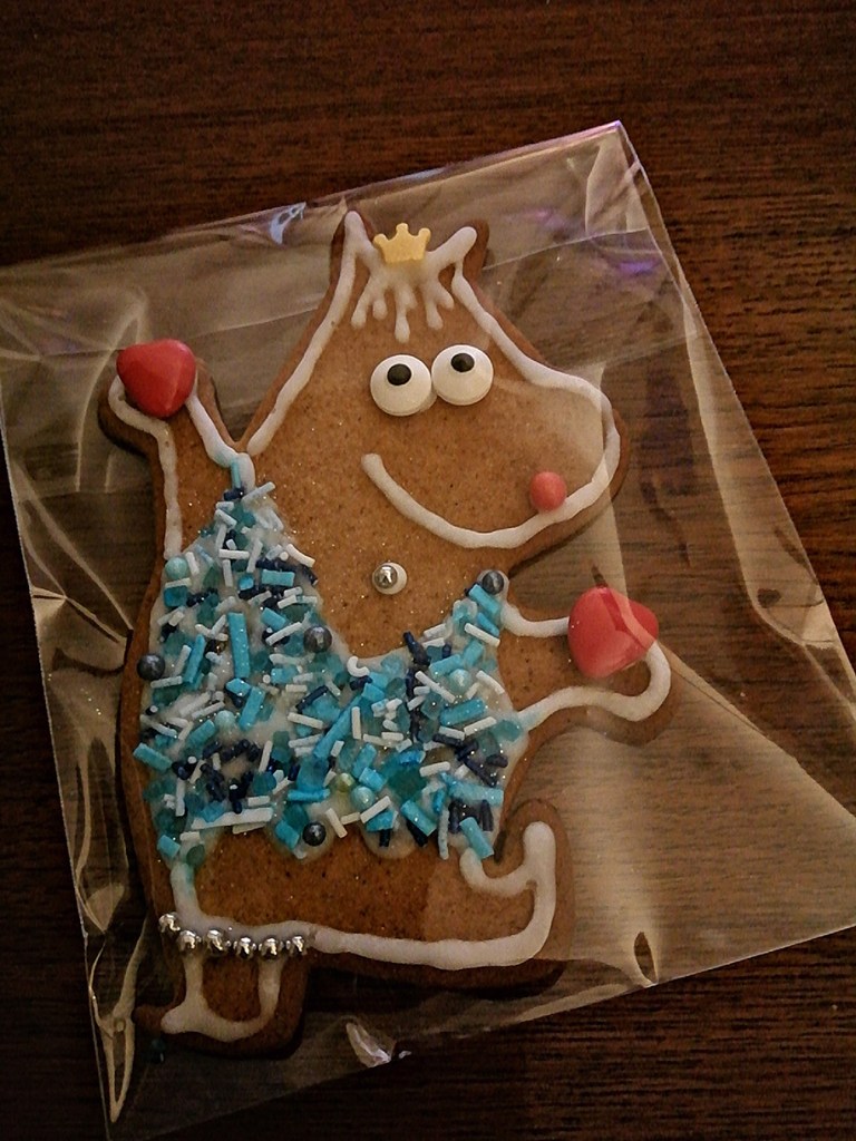 Ät en pepparkaka och du blir snäll! Så sägs det 🙂 Och glad blir vem som helst som får en sådan här Mumin-pepparkaka i julklapp av en vän!
