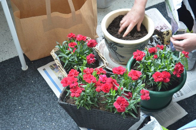 Men så här blev det gjort och något att glädja sig åt. Också det att en del plantor som länge stått och rotat sig olika glasflaskor och -kannor blev planterade igår.