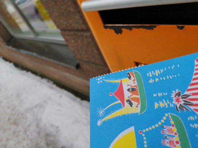 Ett kort med Muminmotiv for iväg till Tyskland.