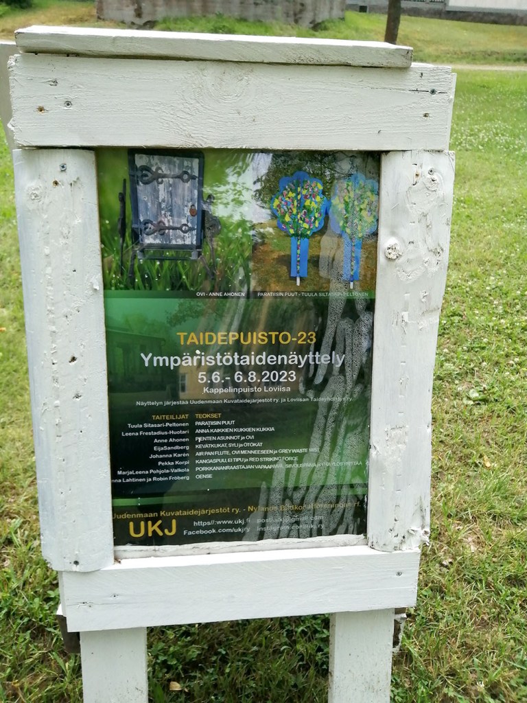 Därför kan jag lite sådär symboliskt hålla fast vid gamla foton också i dag. Ett är från juni 2023 då en utställning började i Kapellparken. Lovisabor, låt er alltså inte luras att gå dit 😀 Detta gäller inte längre.