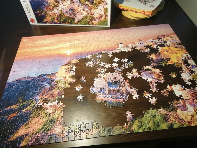 En del av kvällen går i pusslandets tecken. Härligt att det tidsfördrivet finns!