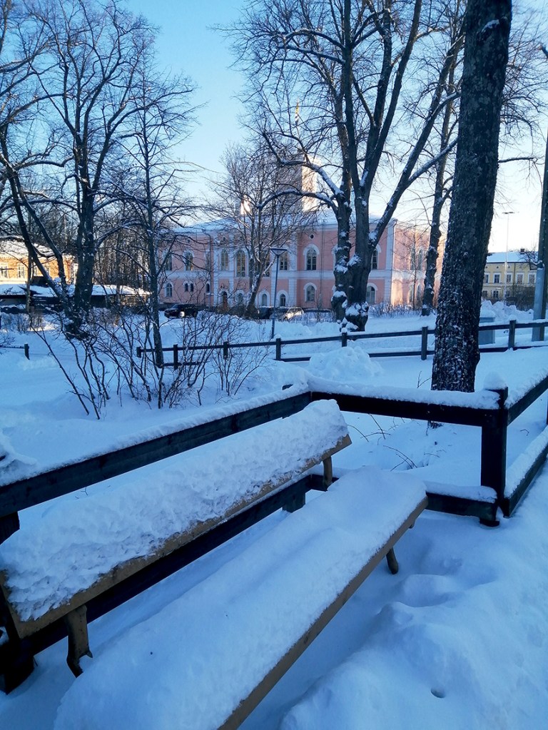 Sisådär minus 10–12 grader har vi haft i dag. När jag tog bilden var jag på väg till dagens massage.