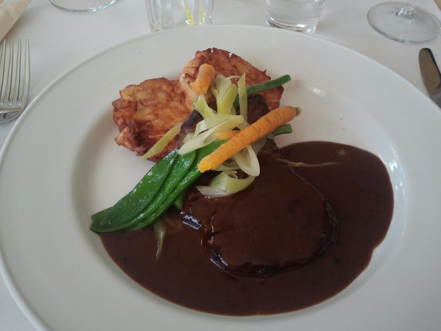 Jag åt Abborfors konjakslax med smetana på toast och rödlök. Det var SÅ gott! Prisvärd förrätt som kostade nio euro, och jag orkade faktiskt inte äta allt för där var tre rejäla stora laxbitar.