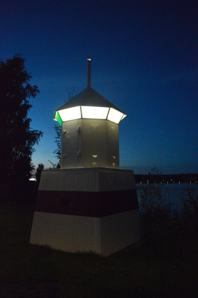 En bild från den 26 augusti, då firades forneldarnas natt i Lovisa. Villa-avslutning kallas det bland annat i Österbotten. En prydnadsfyr på stranden vid Lovisaviken lyser vackert.