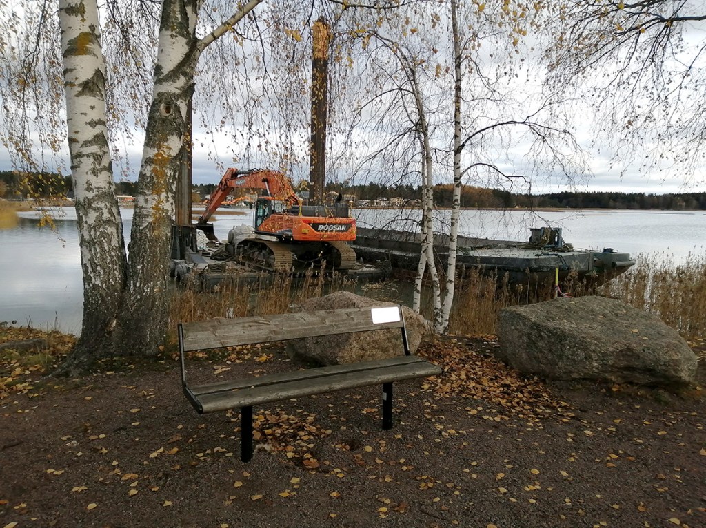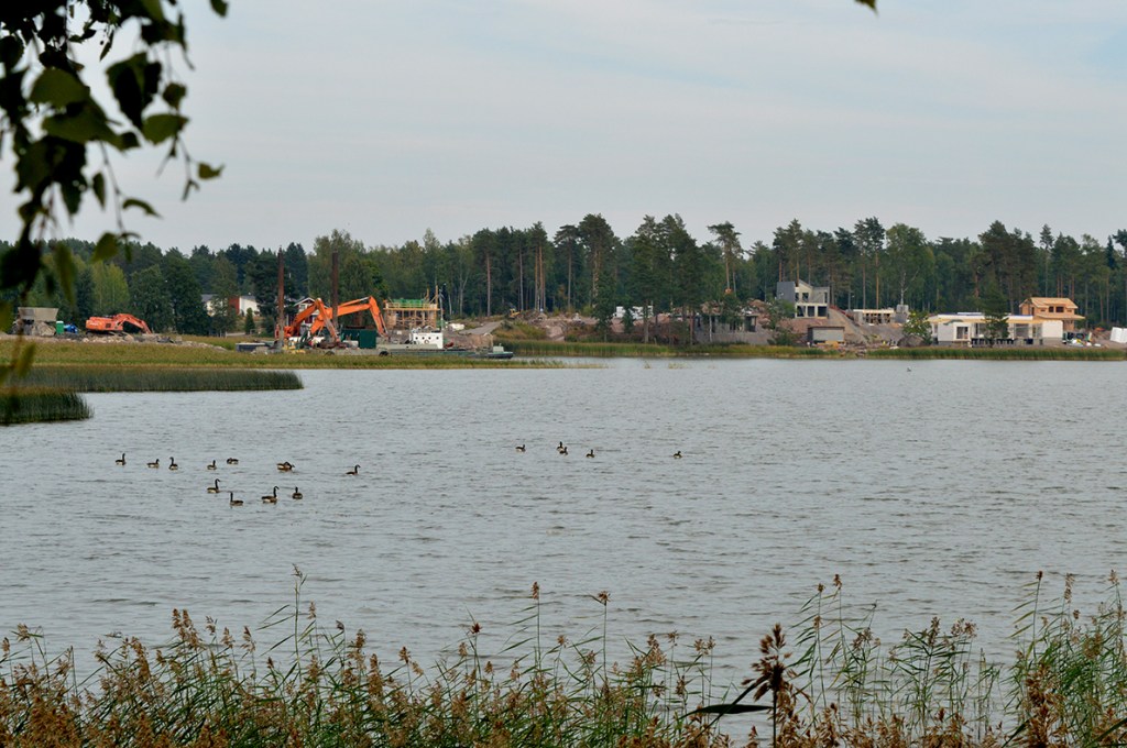 Där ute på Lovisaviken simmar gässen. De samlas i allt större flockar inför hösten och förbereder sin flytt söderut. Men den sker nog först senare i höst.