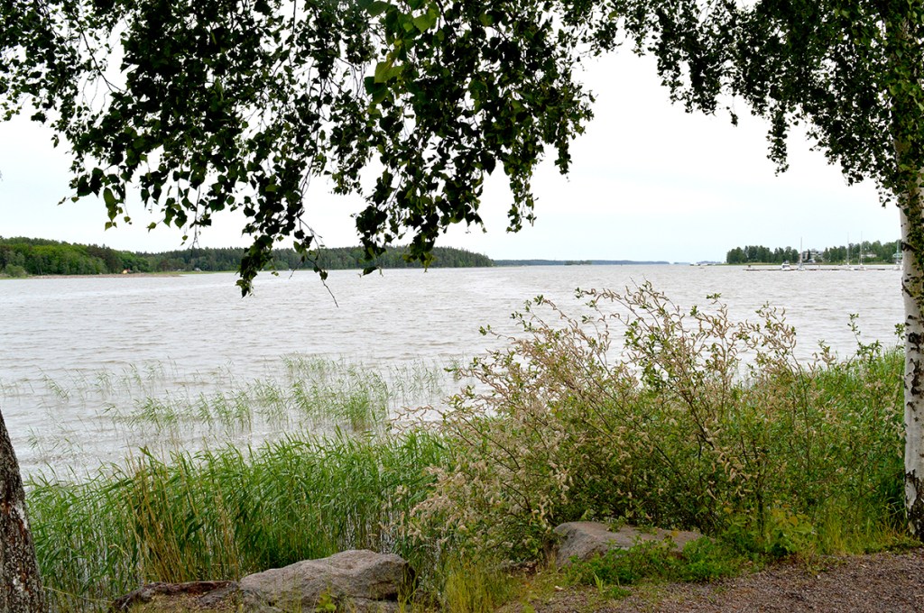 Den här platsen är en verklig oas. Igår cyklade Pia och jag hit. Vi hade lite vägkost med oss, bland annat pizzaslices. Det brukar blåsa friska vindar här men då bilden togs hade vinden redan mojnat såsom den ofta gör mot kvällskvisten.