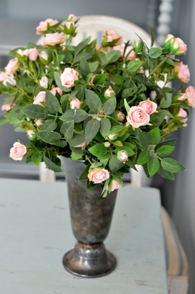 Rosor i en vas i Café Antique i Fiskars Village, augusti 2020.