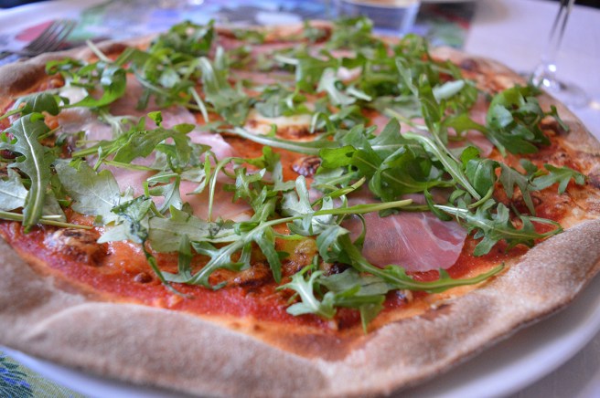 … lade sig likt en sten i magen. Frasig, tunn, rucola, mozzarella, tomat, parmaskinka.