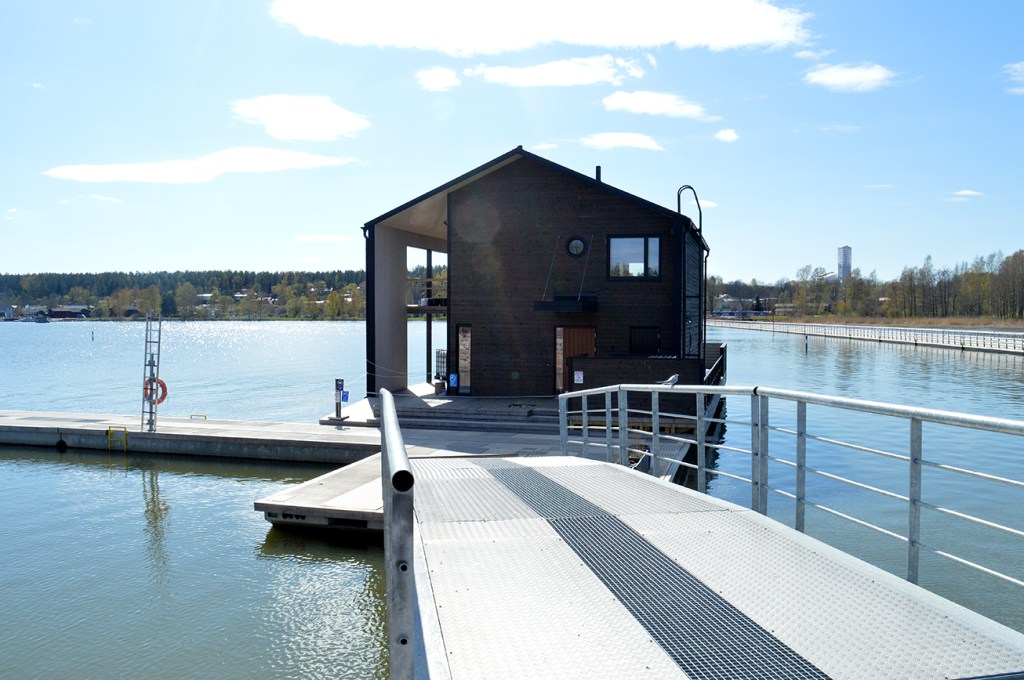 Det flytande huset vid Drottningstranden. Ser ut att vara i bra skick.