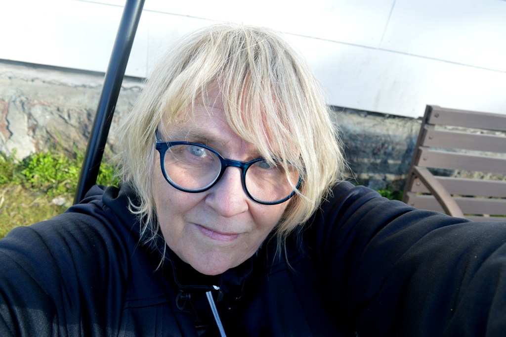 Det blåste ganska rejält här och jag ser åter lite bekymrad ut. Det handlar nog mest om koncentration på att få ett foto av mig själv, utan att jag har glasögonen på som hjälp 🙂