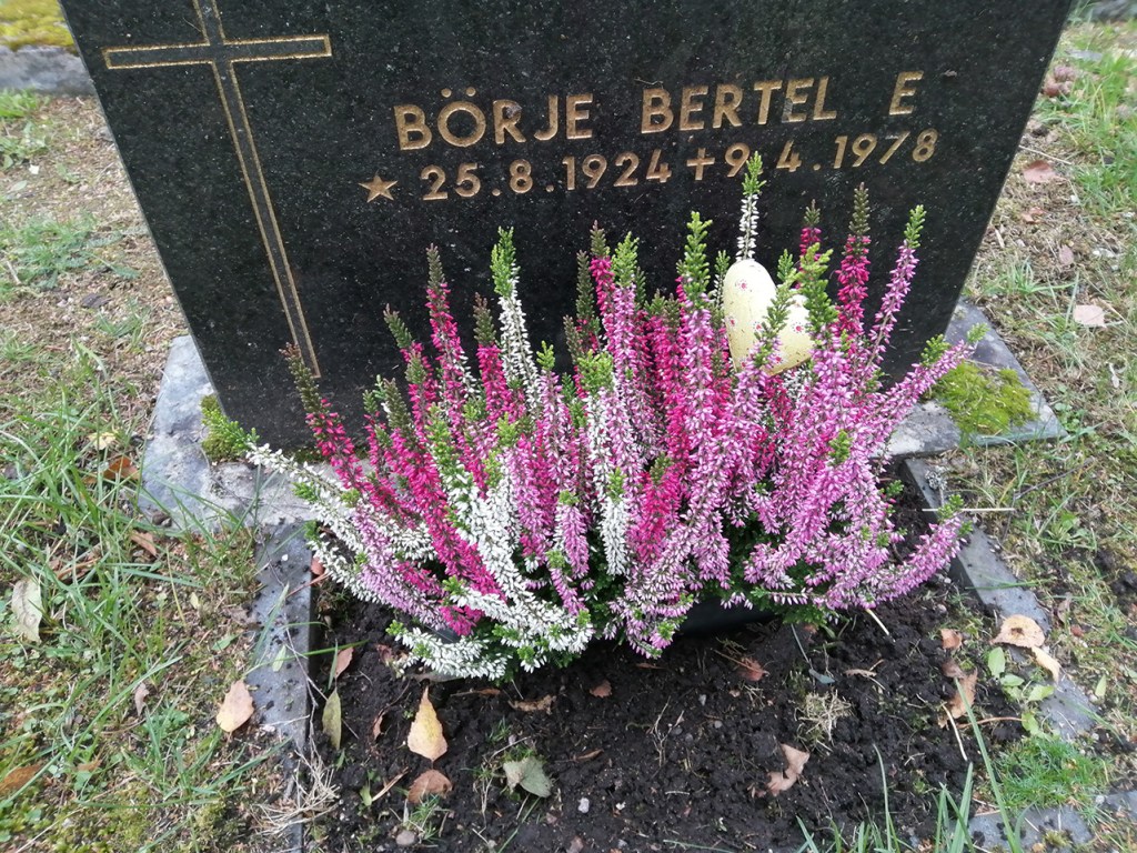 Isande kallt i dag då vi planterade ljung på gravarna. Men skönt att få det gjort. Det är ju bara jag själv som måste gräva fram en varmare tjock tröja, klä mig i högskaftade vinterstövlar, skaffa en ny varm vinterjacka (har bara en kappa).