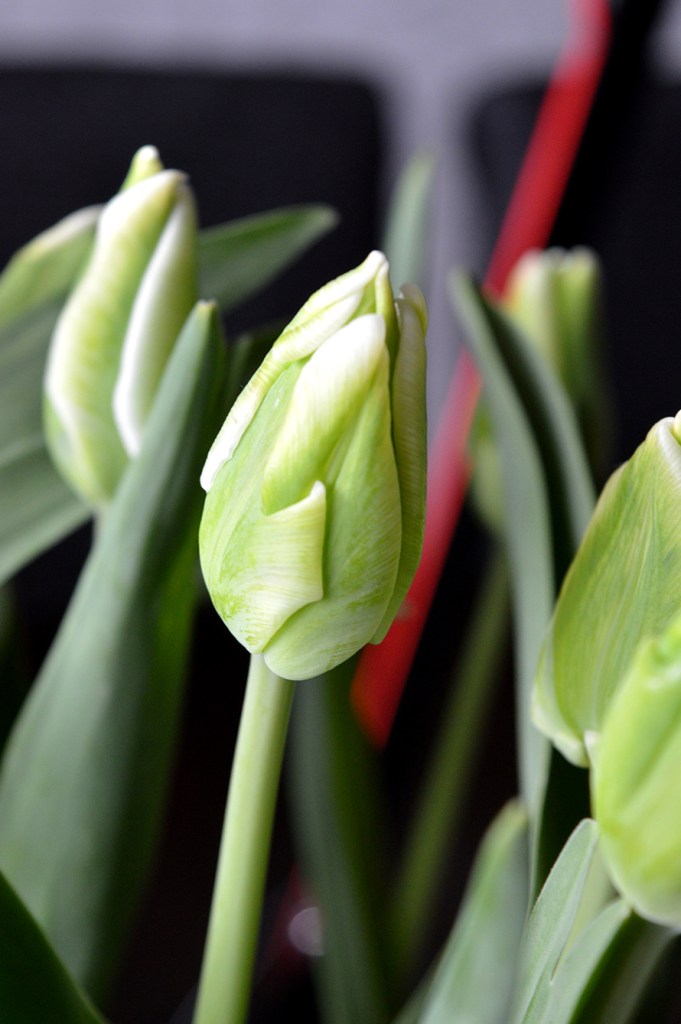 De har bara fått lite vatten, nytt varje dag, i botten på vasen, för att inte blomma ut för fort.