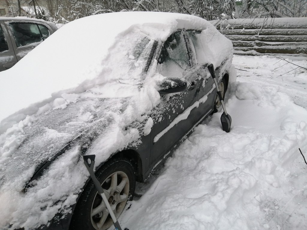 Allt jobb som krävs för att få snön bort, till exempel från bilen innan mamma ska på sårvård… tar energi och tid. I dag ungefär 40 minuter, så det gäller att vara ute ett par timmar innan normalt tänkt, för vi ska säkert gräva oss fram på mammas gård också för att få ut henne.