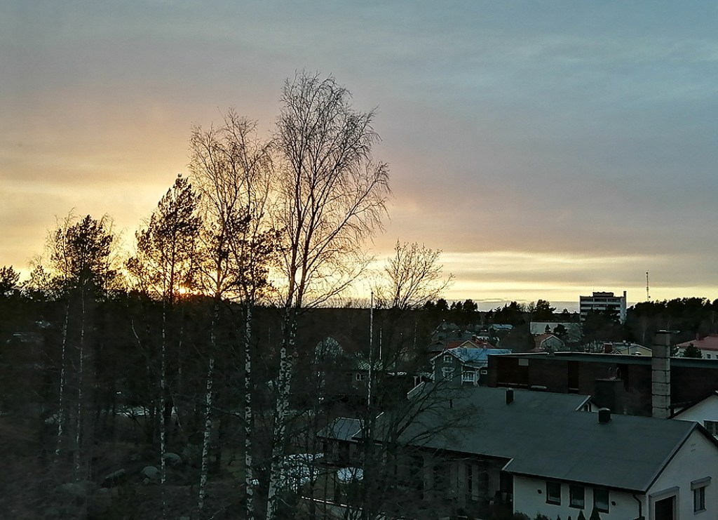 I går, tisdagen den sjätte april, var det mulet och stundvis fick vi lite snö. Den smalt ändå bort direkt. Sedan lyste solen en stund. När jag var ute, till bokföringen och på promenad till en intervju, blåste det kallt.