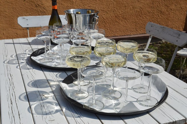Fint dukat ute i trädgården hos Anna där vi hade planeringsmöte och sensommarfest. Väldigt gott alkoholfritt bubbel och rödvinbärssaft. Pajer och piråger och hembakad blåbärskaka också.