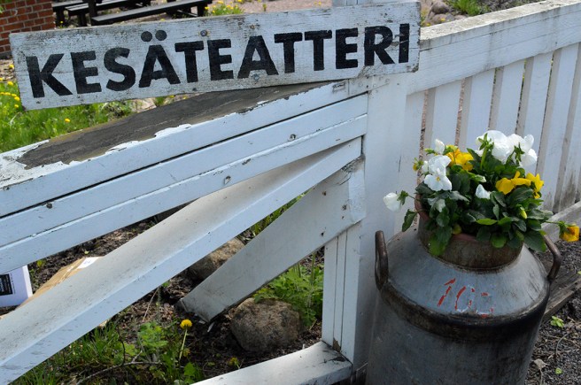 Skylten fanns i Strömfors bruk då de hade sommarteater där.