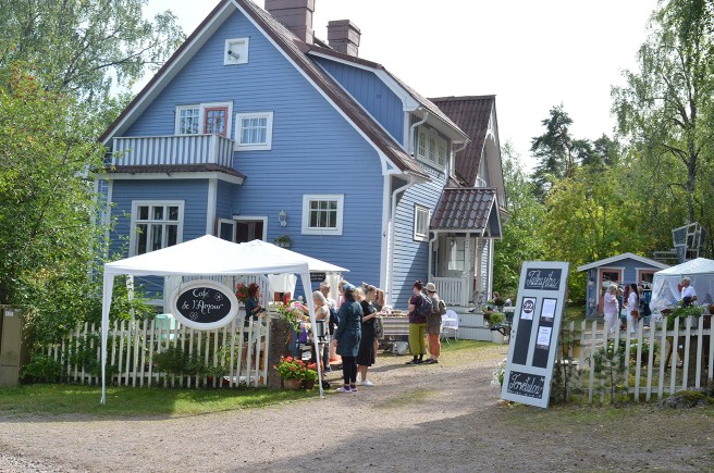 Det har varit underbart väder alla dagar sedan vi kom hit. Vi har badat i havet och vi har badat bastu. I går spelade vi också ett spel som heter ”Piirrä ja arvaa”, alltså rita och gissa. En ska rita och den andra ska, utgående från olika ord, namn eller talesätt som finns på små spelkort, gissa vad som ritas.