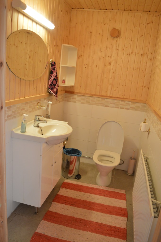 I dag är det sista hela dagen på stugan, imorgon hemfärd mitt på dagen. I går badade vi i tunnan som syns till höger. Först skulle den fyllas med vatten, vilket tog sin tid och sedan skulle vattnet värmas genom vedeldning. Nog var det sedan skönt att på kvällen ligga där i det varma vattnet, äta jordgubbar och skåla.