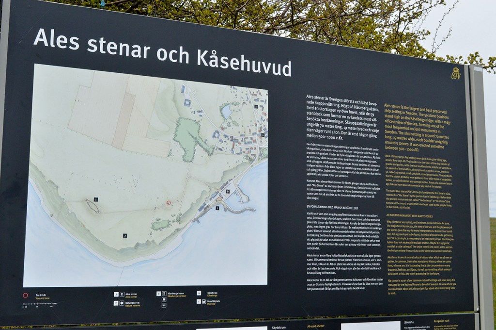 Då kom jag på att jag hade bilder från Nya Östis läsarresa 2023 kvar på datorn, och Ale stenar är en fornlämning. De finns i Sverige. Vår resa gick ju genom landet ner mot Österlen och sedan via Danmark till Tyskland innan vi återvände till Finland.
