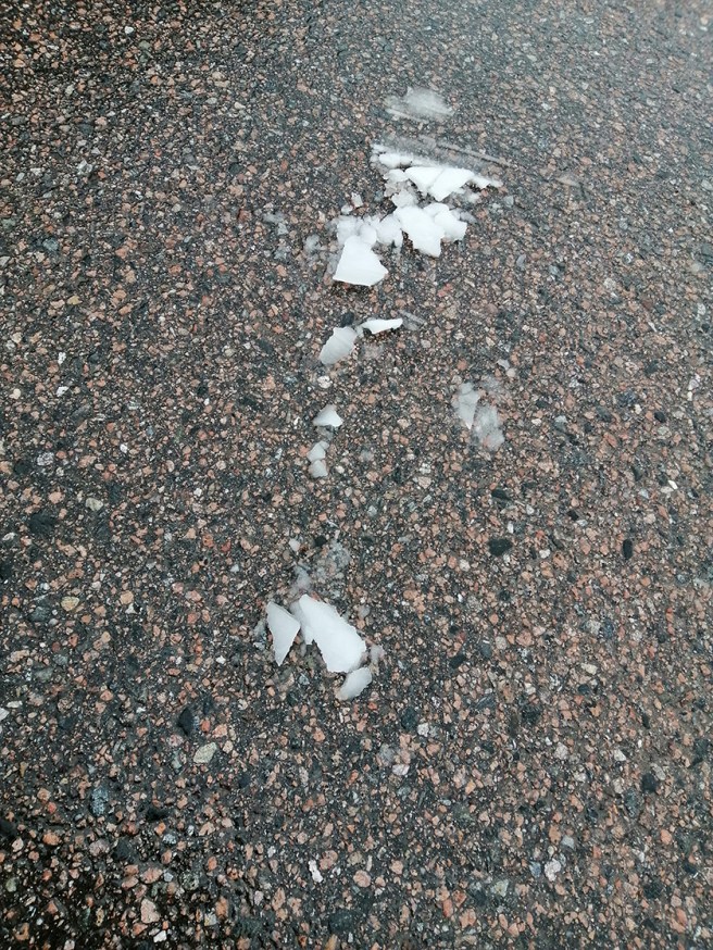 Snö låg kvar på mammas gård då vi åkte dit med inköp efter klockan 18 i kväll.Någon har sopat snön bort från vindrutan på en P-plats.Yes! Jag fick flytta in från balkongen och behöver inte frysa!