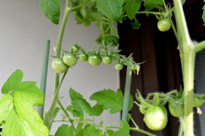 Och då jag vänder på klacken ser jag mina tomater. Än finns det kvar att skörda.