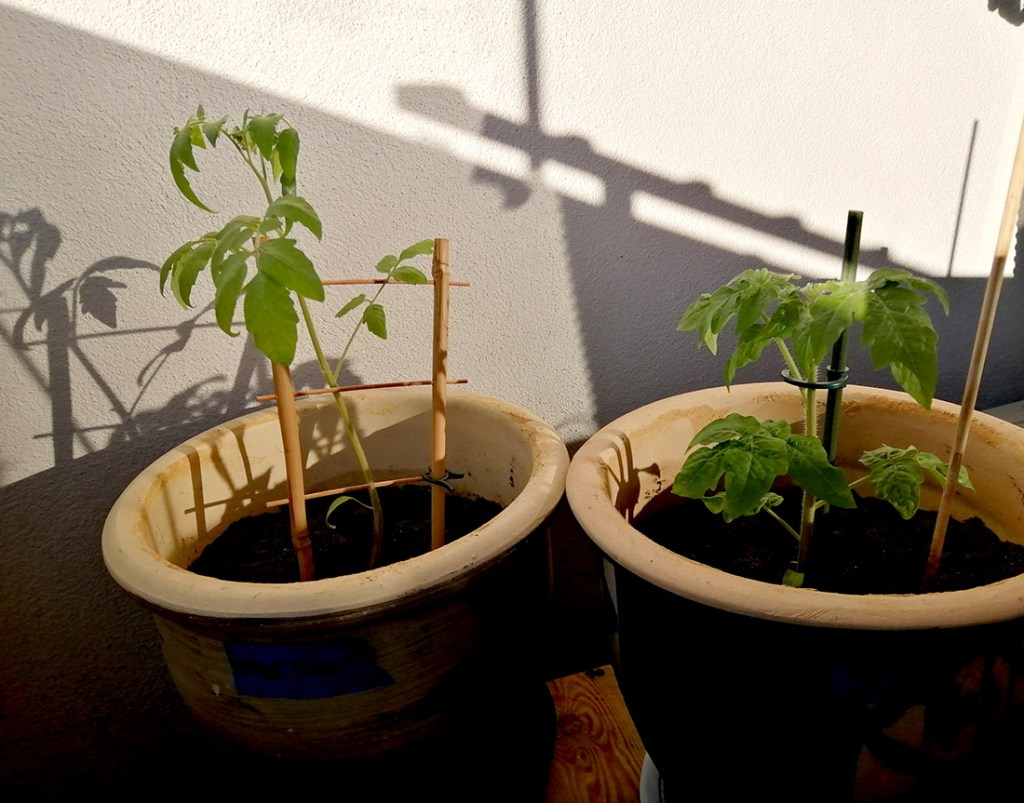 Det har varit så pass kalla nätter att jag inte vågat ha de späda tomatplantorna ute på balkongen, inte ens fastän den är inglasad.