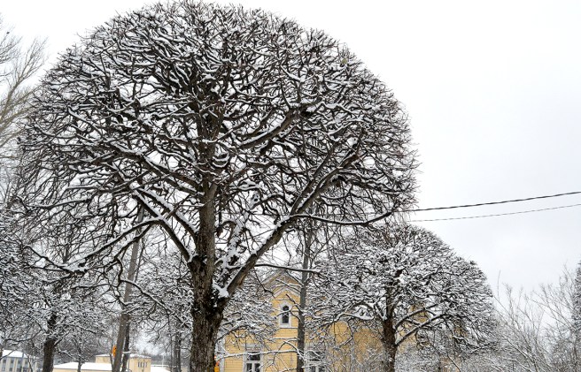 Nu SÅG jag faktiskt hur vackert det är då sena eftermiddagssolen lyser mot en trädstam.Den här bilden hade ju platsat också i Trees on Tuesdays. Kala träd är fina, gamla knotiga stammar likaså. Det här är en av parken som ligger intill kyrkan.Och en gammal trädstam till 🙂 Träden i bakgrunden är ganska nyplanterade. Gamla som var i dåligt skick togs bort. På sommaren märker man knappt att några träd är betydligt yngre och mindre än de andra. Staden har en träd-bank och det är jättebra, för det krävs många år innan träden ens är så stora som dem vi ser i bakgrunden.