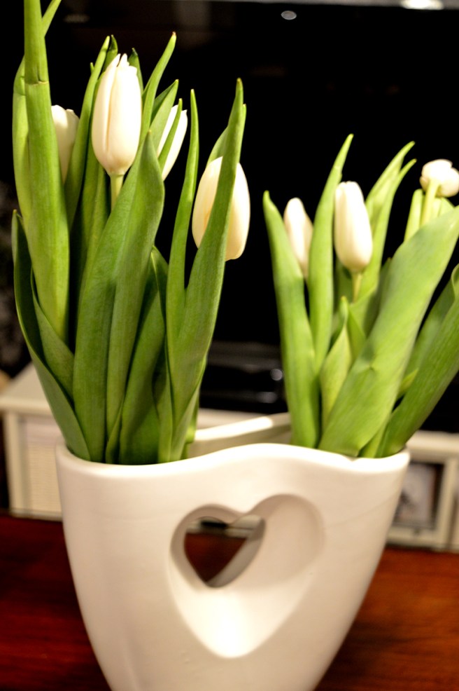 Jag tror tulpanerna blir vita, men kanske de också ha någon annan nyans. Ni får följa med och se hur de utvecklas 🙂