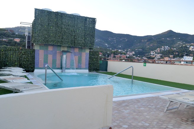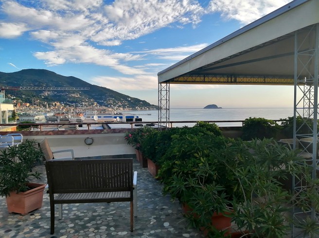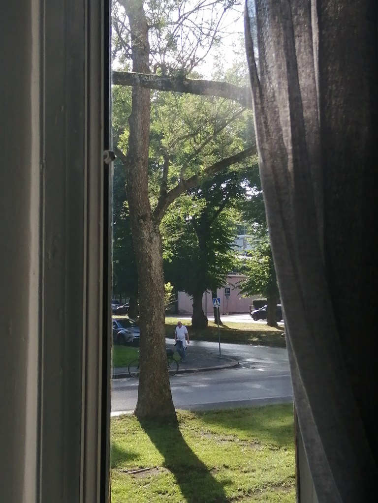 Utsikten från tredje våningens flygel ser ut så här. Med en del egnahemshus i förgrunden och sedan medborgarinstitutets hus med det bruna sluttande taket och röda, träbyggnaden på gården. Hotell och restaurang Zilton är den smutsgula byggnaden och längst borta kyrkan med det tämligen nya taket. Blandad arkitektur minsann.