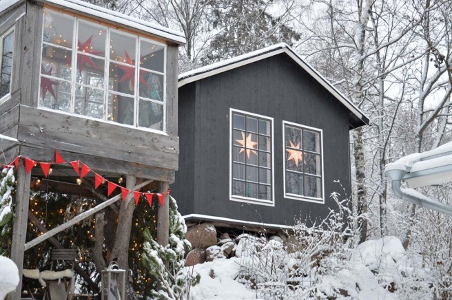 Här är det ingen som bor, och huset är inte direkt historiskt 😀 Men det är en ”lekstuga” på Vackerbackas tomt, ett lite annorlunda lusthus eller vad man vill kalla det.