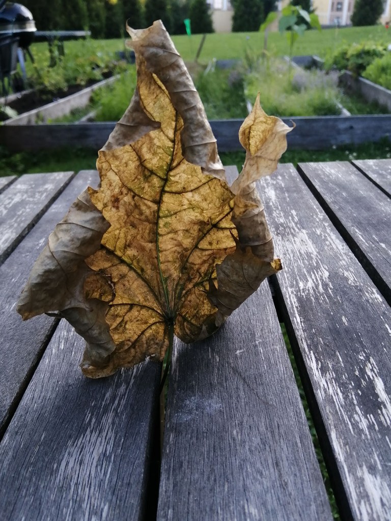 Ett vissnat löv kan också vara fint. Det prasslade runt i grönskan med hjälp av blåsten, bland sånt som ännu växer och är grönt.