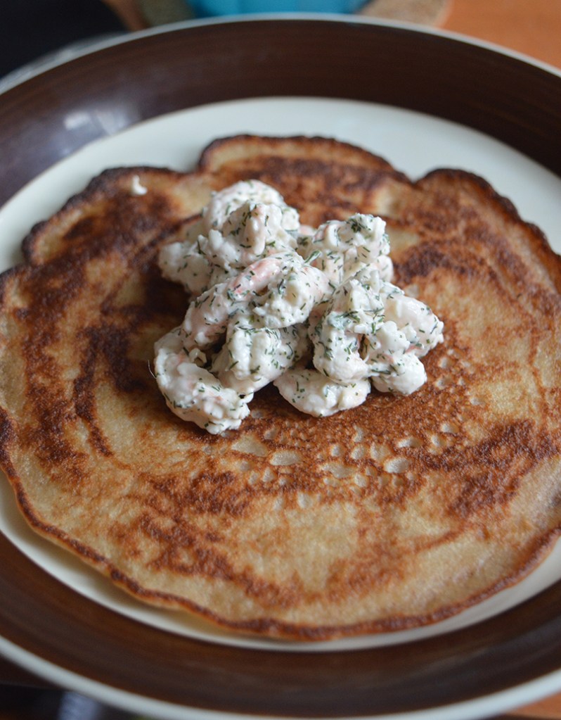 I fredags bjöd Pia på blinier med räkröra. Gudomligt goda. Jag har köpt blinier som halvfabrikat i affären… men nej, de smakar ingenting. Samma gäller sådana som finns i större livsmedelsaffärers diskar… jag vet inte hur de tillreder dem, men direkt goda är de inte.