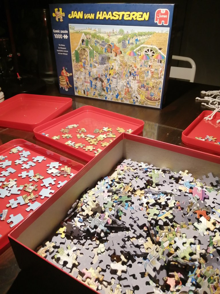 Jag kom förstås hem med ett pussel med van Haasteren motiv. Tjugofem procent rabatt och ett pussel som innehåller en plansch. Jag valde motivet med julgranen som syns till vänster.