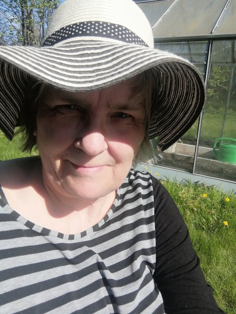 Och så en mycket spontan selfie av en glad gumma i trädgården. Rensade, vattnade, njöt i solen. Solrosor verkar komma upp. Zucchini likaså. Tomater, jordgubbar, majsgräs, smultron, vilda blommor. Glädje ❤ !