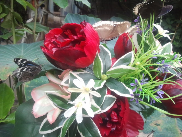 Fjärilarna flög runt huvudena på oss och landade sedan på de blomsterbuketter som fanns här och där.