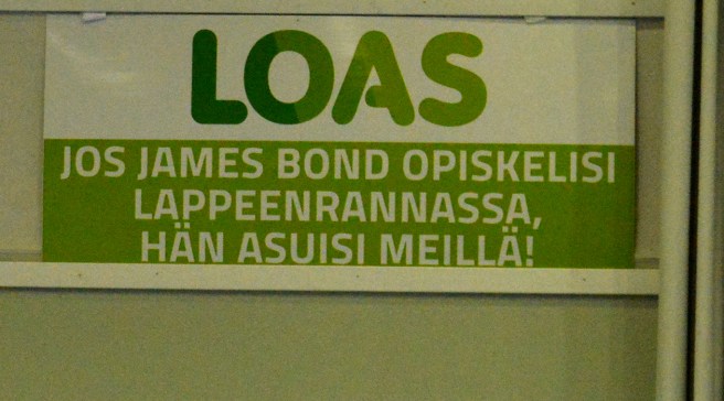 Tycker det ser ut som om jultomten knäppt jackan fel. Vem den andra filuren är vet jag inte. Kanske maskot för en bank? Dessa två välkomnade oss till idrottshuset i Villmanstrand.