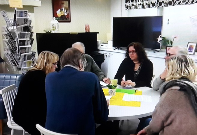 Helena Orava intervjuas. Hon är en prenumerant som vill ha en lokal papperstidning.